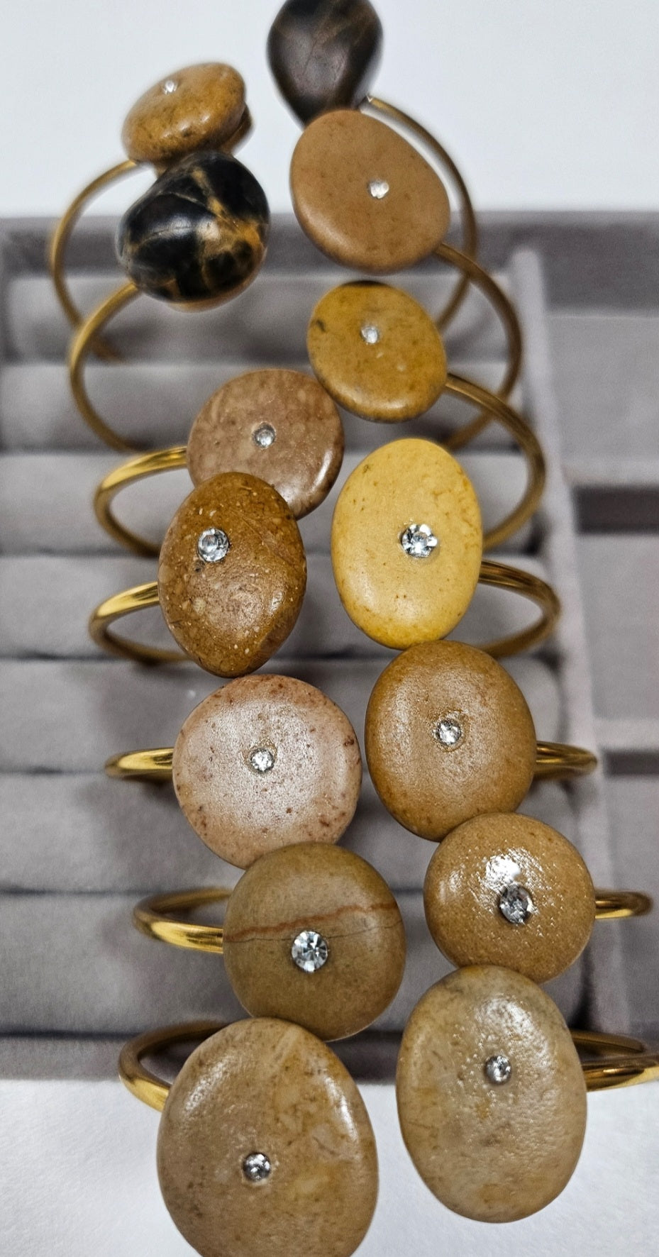 Cada brazalete está elaborado a partir de auténticas piedras de mar, trabajadas a mano para conservar su forma natural y convertirlas en joyas únicas.