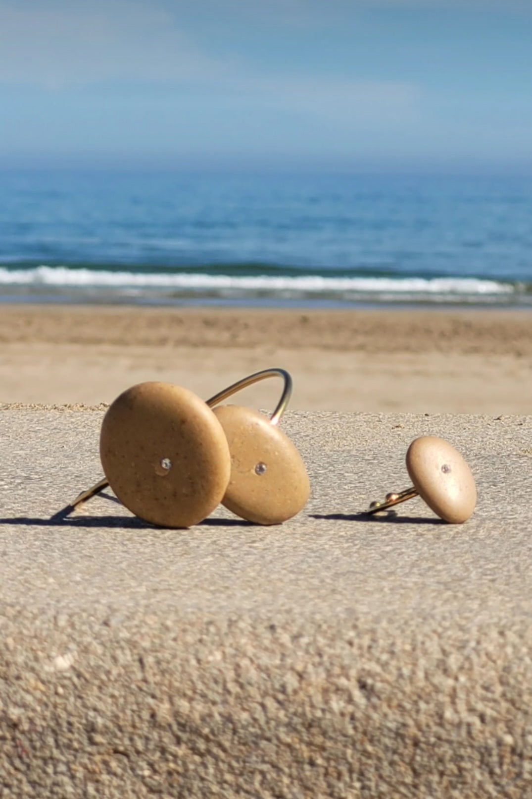 Estos gemelos están elaborados con auténticas piedras de mar, seleccionadas por su textura y carácter único, y trabajadas a mano para conservar su esencia natural.