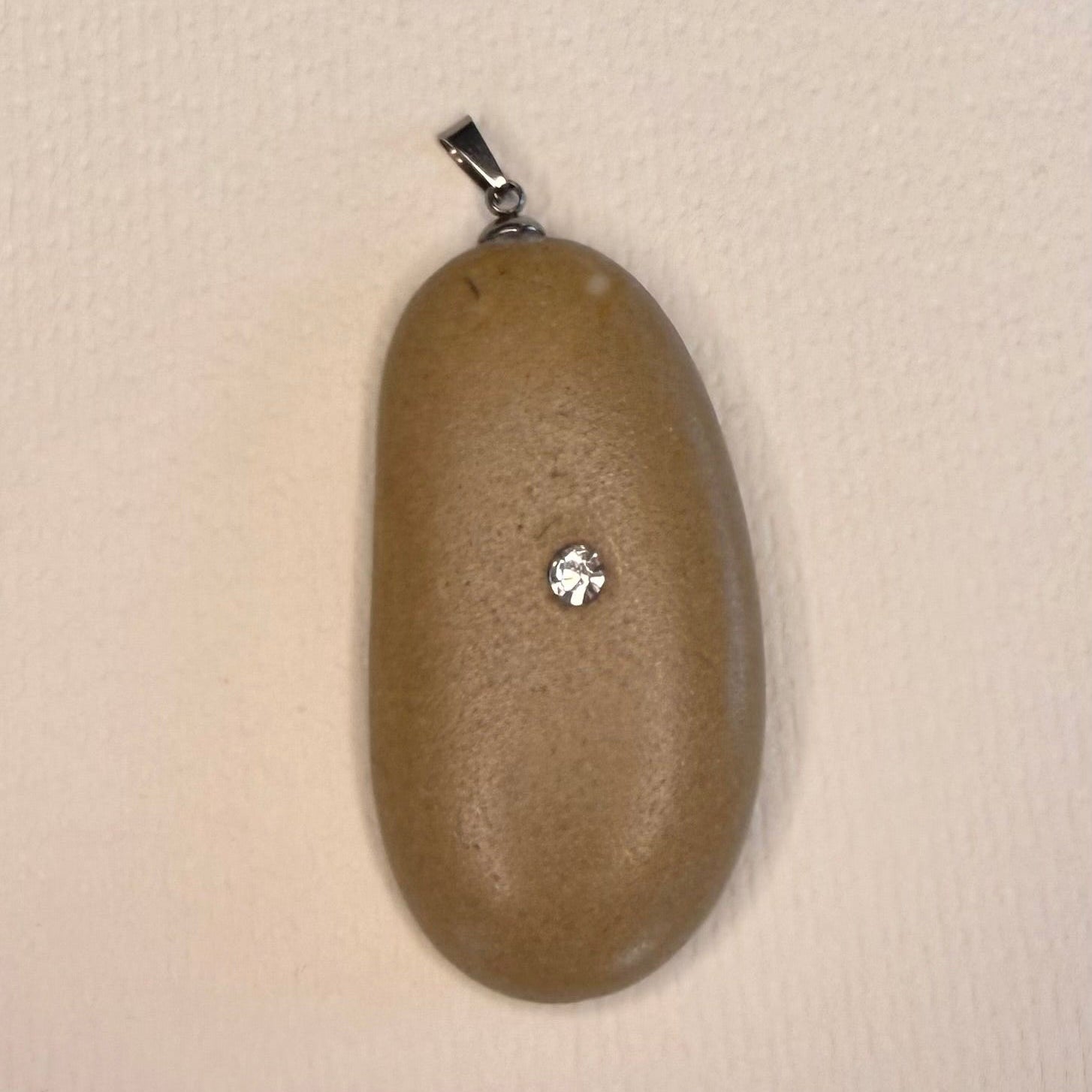 Precioso colgante con piedra de mar alargada en tono beige, realzada con una circonita blanca de 3 mm en el centro y un enganche en acero inoxidable. Una pieza sencilla y elegante a la par, perfecta para cualquier ocasión.