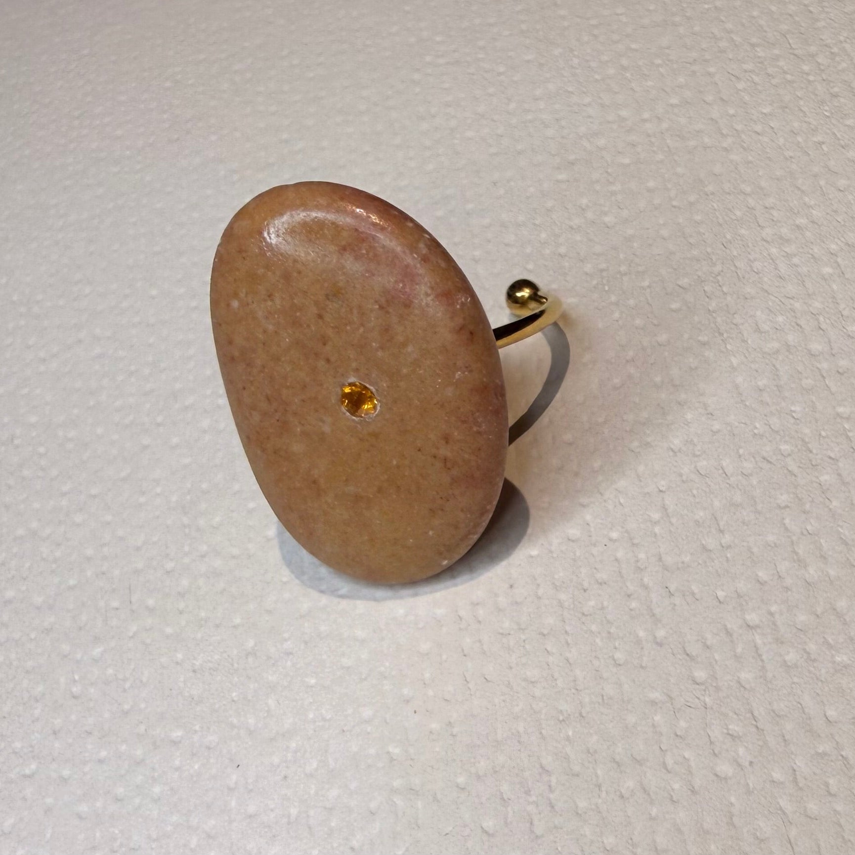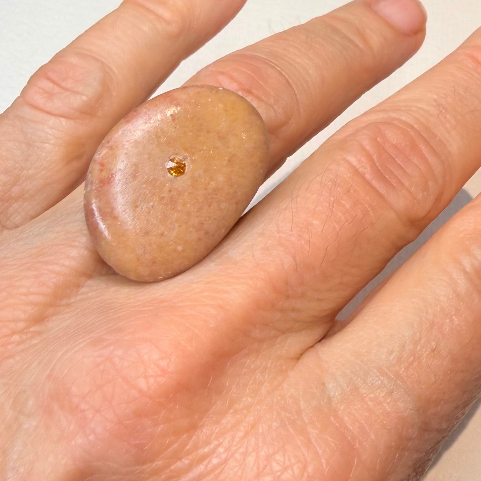 Maravillosa piedra de mar en un cálido tono anaranjado, pulida por las olas y bañada por la luz del atardecer.