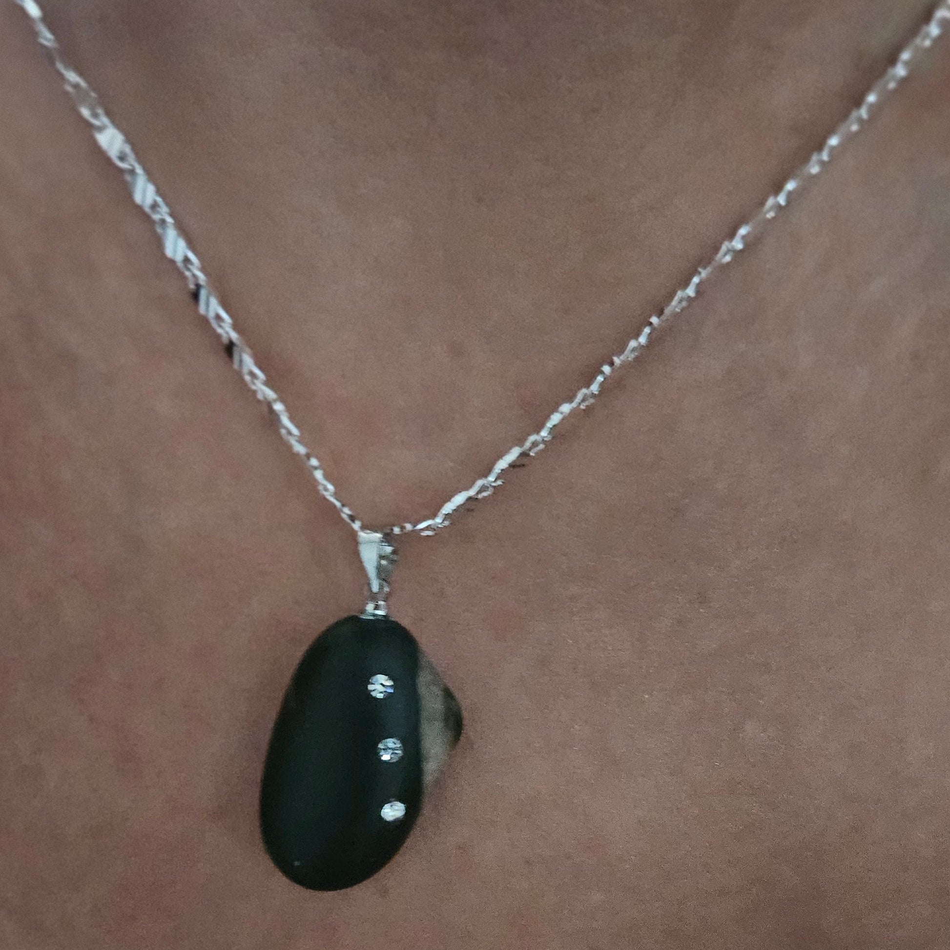 Montado sobre un enganche de plata de ley, este colgante combina artesanía, diseño y materiales nobles para ofrecer una joya exquisita, perfecta para quienes valoran la exclusividad y el detalle en cada pieza.