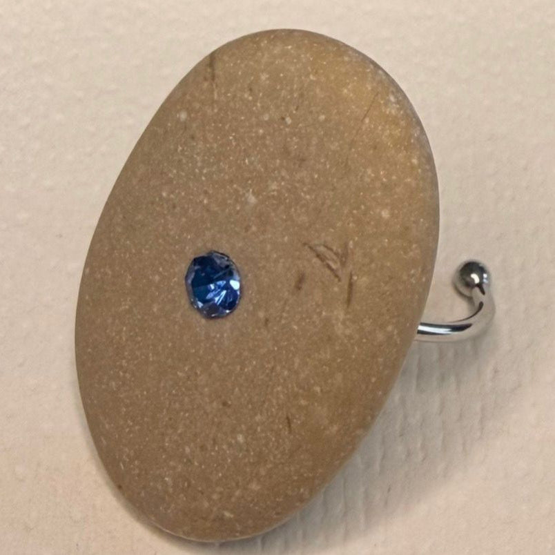 Este anillo ha sido diseñado para mujeres que encuentran belleza en la unión de lo natural con lo sofisticado. Su base ajustable de acero plateado ofrece comodidad y versatilidad, mientras que la piedra natural en tono arena clara evoca serenidad y equilibrio. En el centro, un cristal Swarovski incrustado al ras en azul intenso aporta un contraste sorprendente, lleno de vida y luminosidad. La fusión entre la suavidad de la piedra y la fuerza del brillo crea un diseño único, elegante y distinguido. Una pieza que encarna la esencia de la discreción y el buen gusto