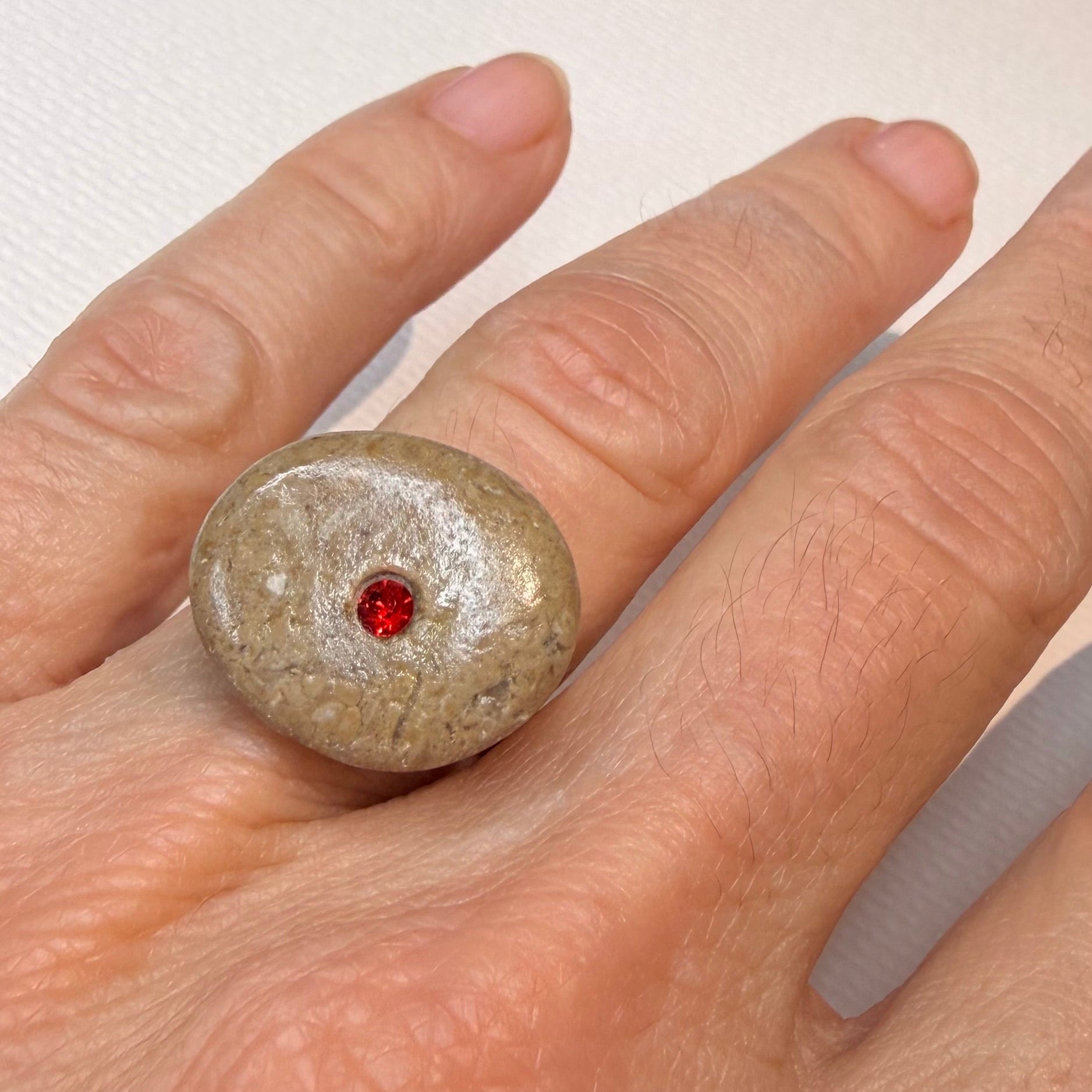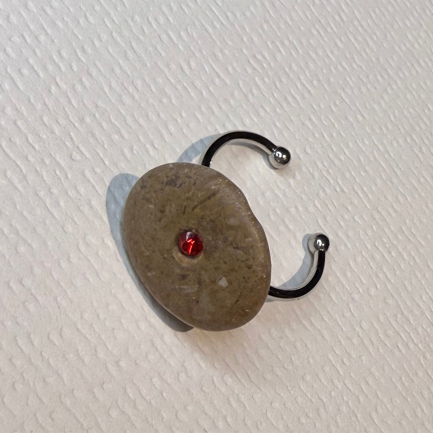 En su centro, un cristal Swarovski en color rojo brilla como un destello de sol sobre la arena húmeda.
