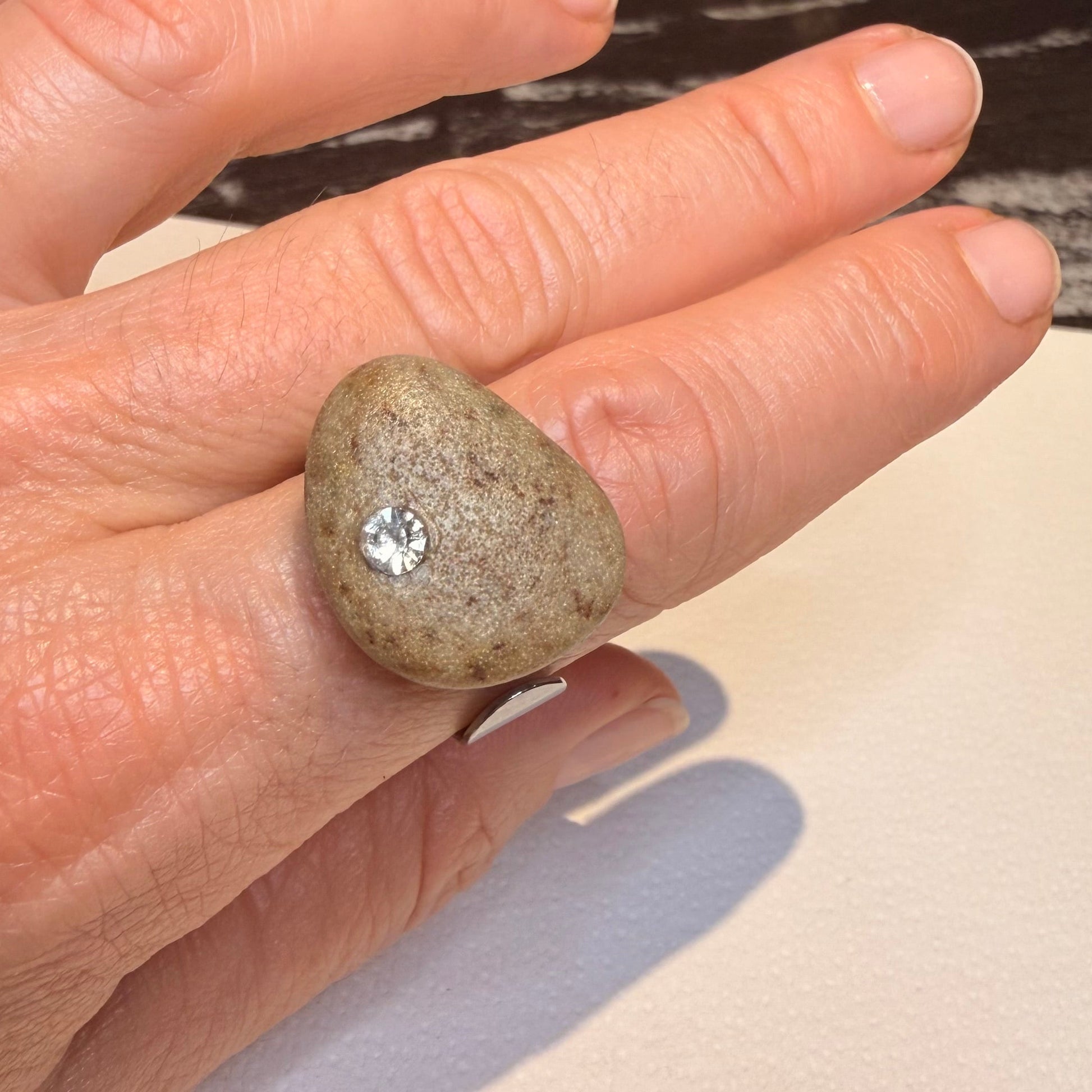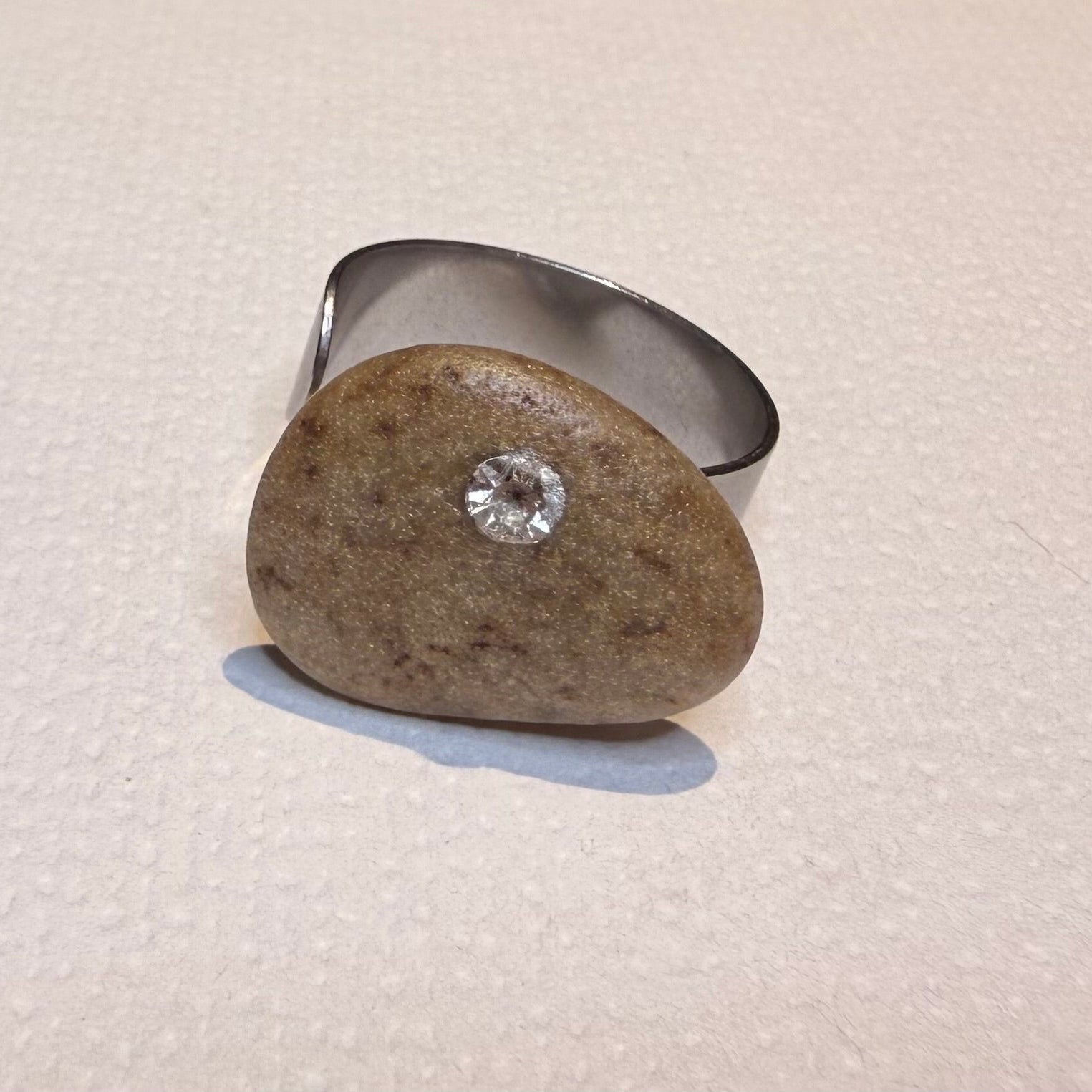 Piedra de mar en suaves tonos beige y marrón, con sutiles puntos naturales que el océano dibujó con el tiempo.