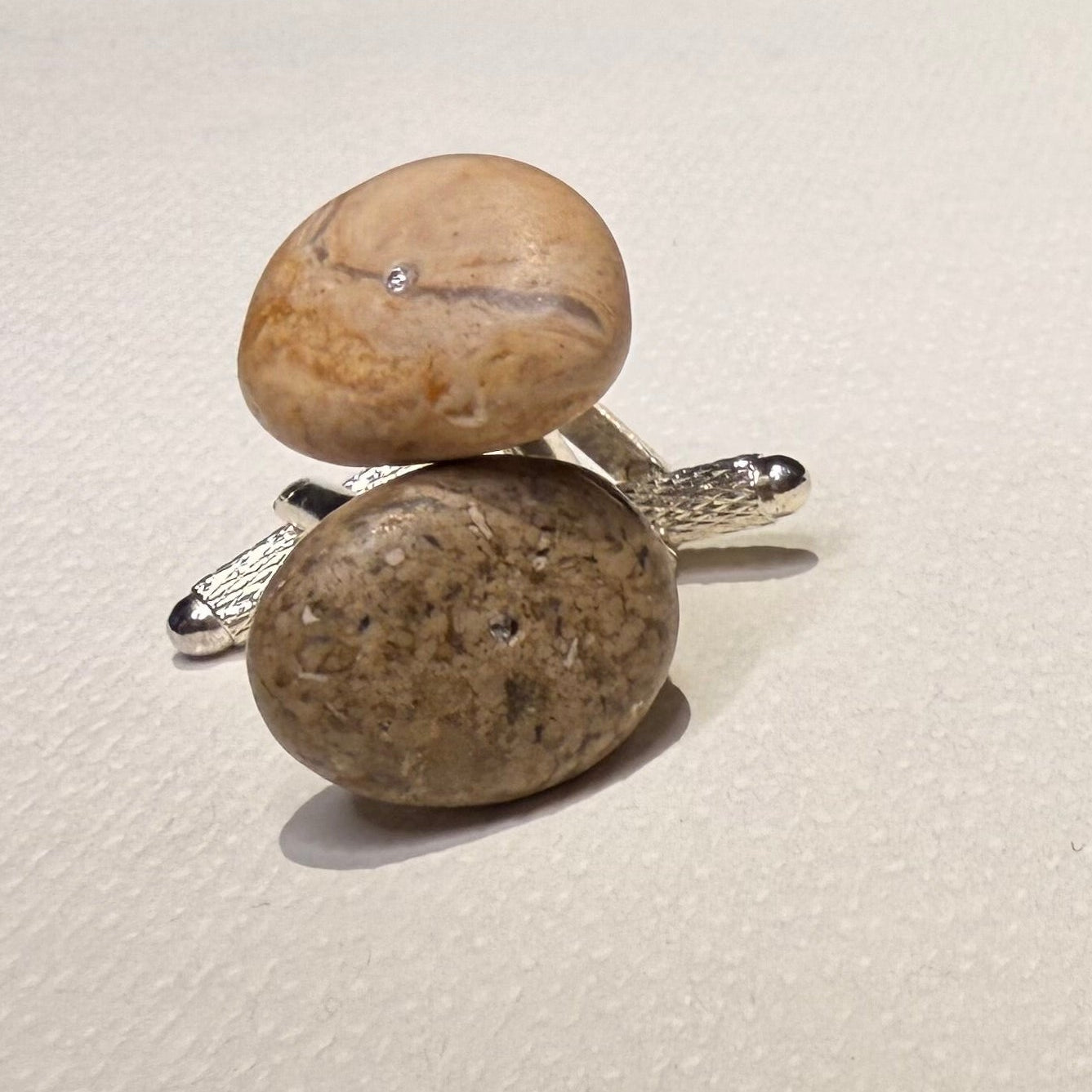 Gemelos exclusivos e irrepetibles, creados con piedras de mar naturales y una circonita incrustada que aporta un toque de luz y sofisticación. Cada par, una obra singular firmada por la naturaleza.Montados sobre base de acero inoxidable.